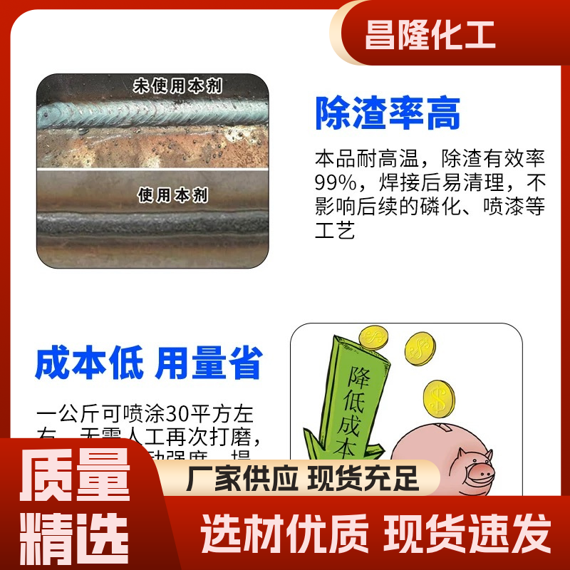 牌的防飞溅剂电焊二保焊易于清除昌隆化工金属焊接产品:估价:90.00,规格:昌隆化工,产品系列编号:昌隆化工 发布日期:2025-10-23